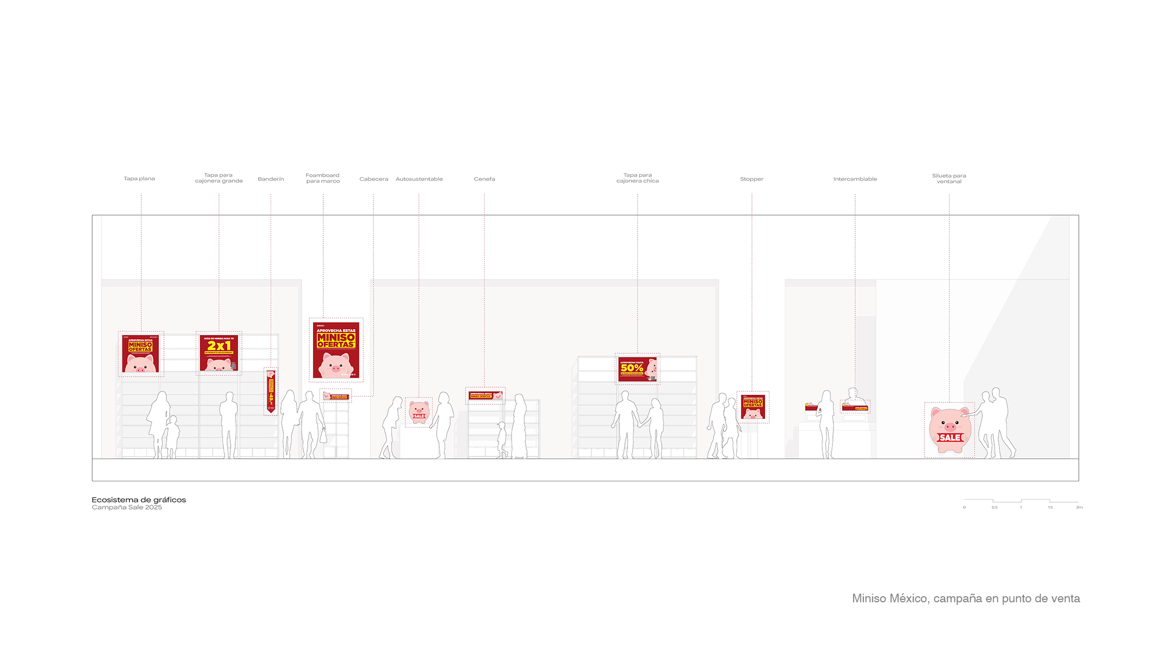 Este mismo enfoque se aplica de forma constante en la colaboración con Miniso, acompañando el lanzamiento de nuevas licencias, campañas promocionales y la actualización de materiales en tienda, así como el desarrollo de piezas para remodelaciones y nuevos formatos.